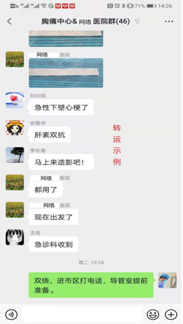 10:10由救護(hù)車轉(zhuǎn)出就診醫(yī)院,接診醫(yī)生上傳心電圖至胸痛中心微信群,