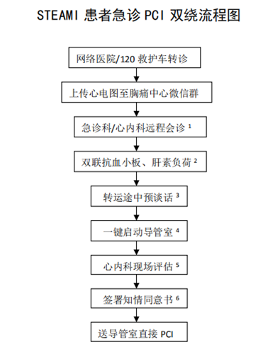胸痛中心對(duì)急性心肌梗死的救治,已不局限在院內(nèi)綠色通道的建立,而把救治工作延伸到院前,這樣才能更大程度地縮短急性心?;颊呖偟男募∪毖獣r(shí)間。按照以往的經(jīng)驗(yàn),患者到達(dá)急診科,掛號(hào),繳費(fèi),檢查至少需要30-60分鐘,如果患者收到病區(qū)或者CCU再到導(dǎo)管室至少需要1.5-2小時(shí)。為節(jié)省這些時(shí)間,胸痛中心實(shí)行繞行急診科,繞行CCU的“雙繞”模式,即患者經(jīng)120救護(hù)車,不能做介入的醫(yī)院診斷為急性ST抬高型心肌梗死,決定轉(zhuǎn)往能做急診介入的胸痛中心,不經(jīng)過急診科,CCU的處理,直接送到導(dǎo)管室,接受手術(shù),從而有效地縮短患者的救治時(shí)間,更多的心肌。我們胸痛中心經(jīng)過實(shí)行“雙繞”,已經(jīng)把患者從到達(dá)醫(yī)院大門至開通血管的時(shí)間縮短為21~22分鐘。心肌總的缺血時(shí)間縮短為50分鐘。